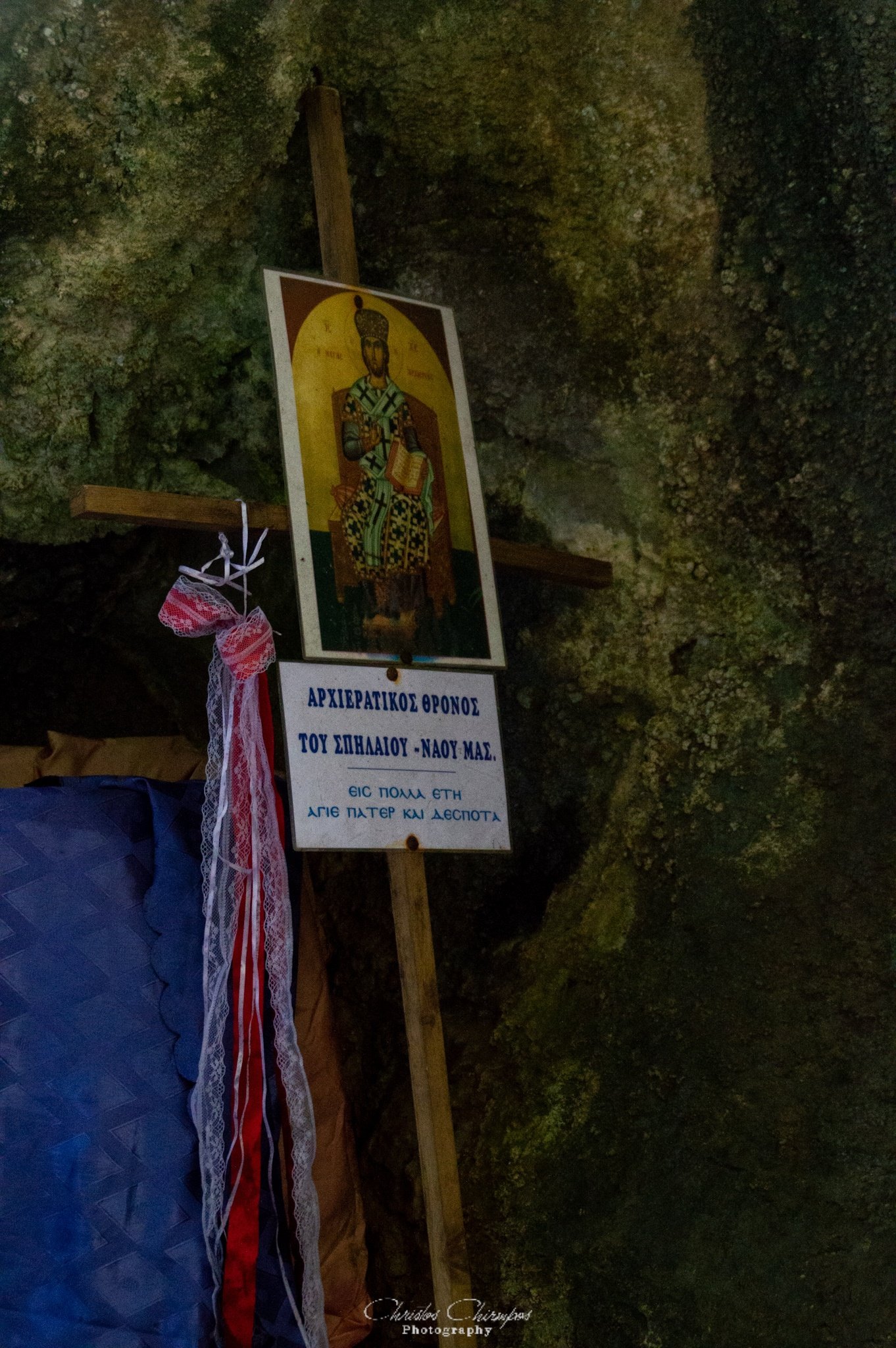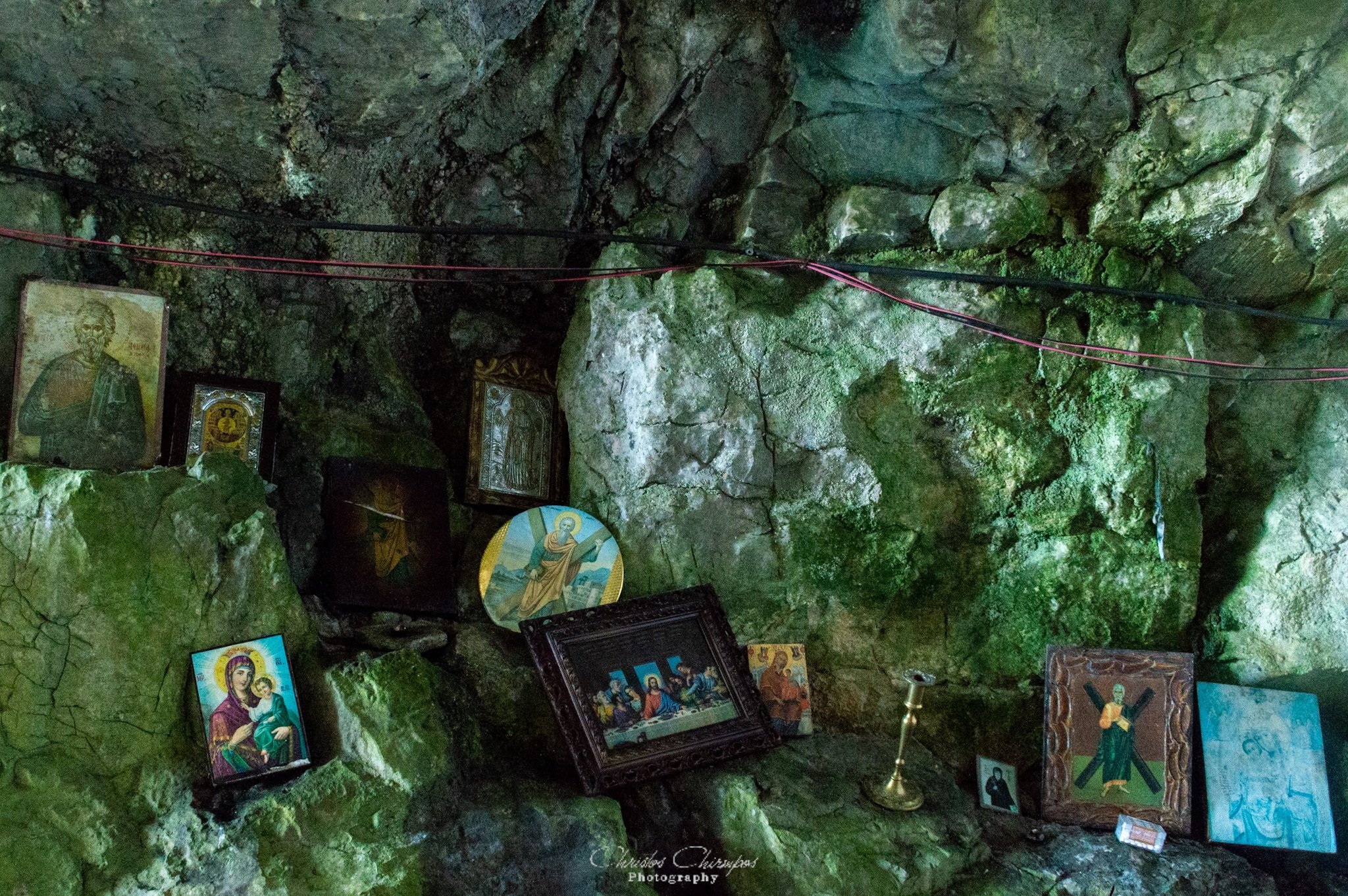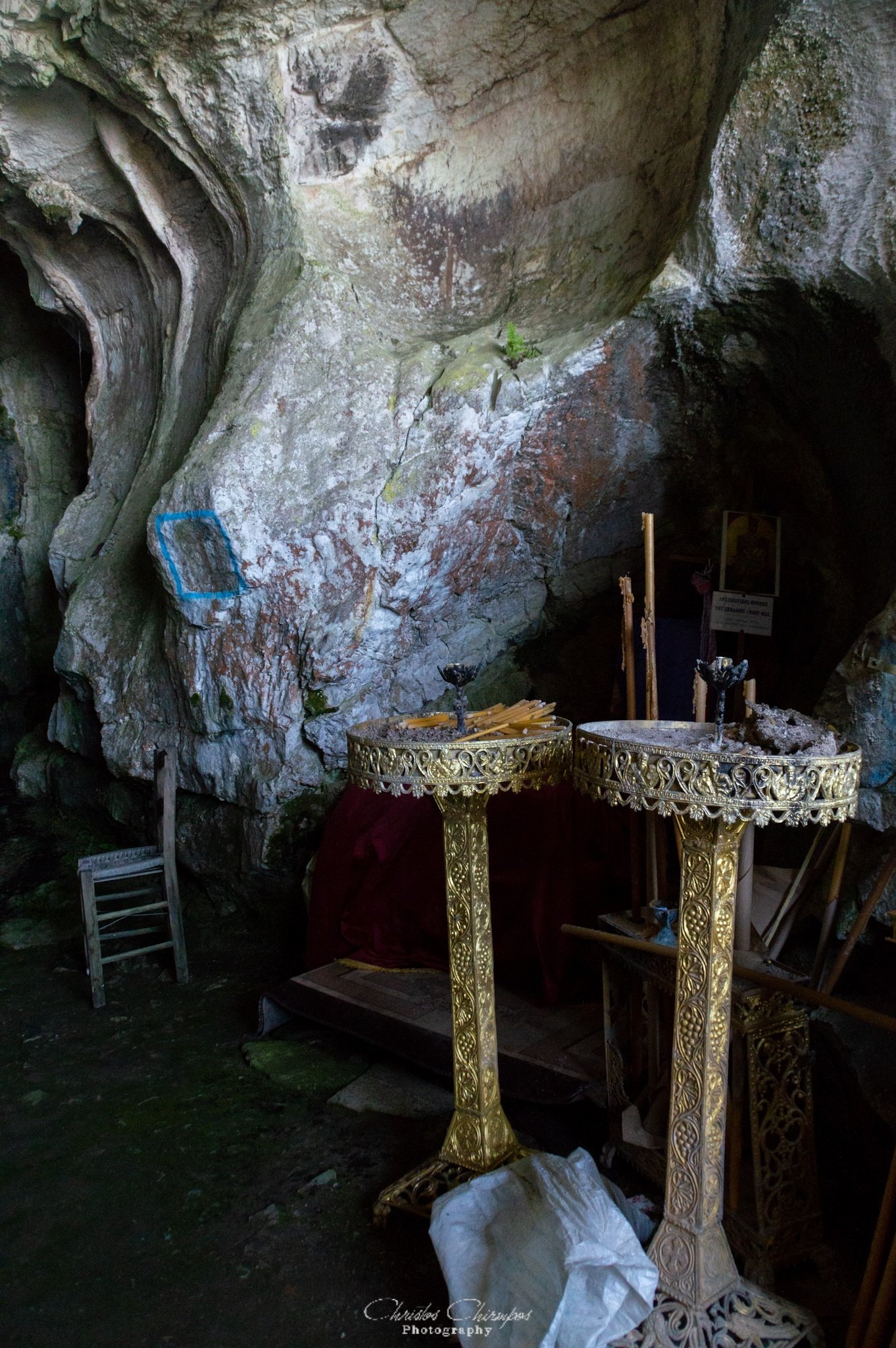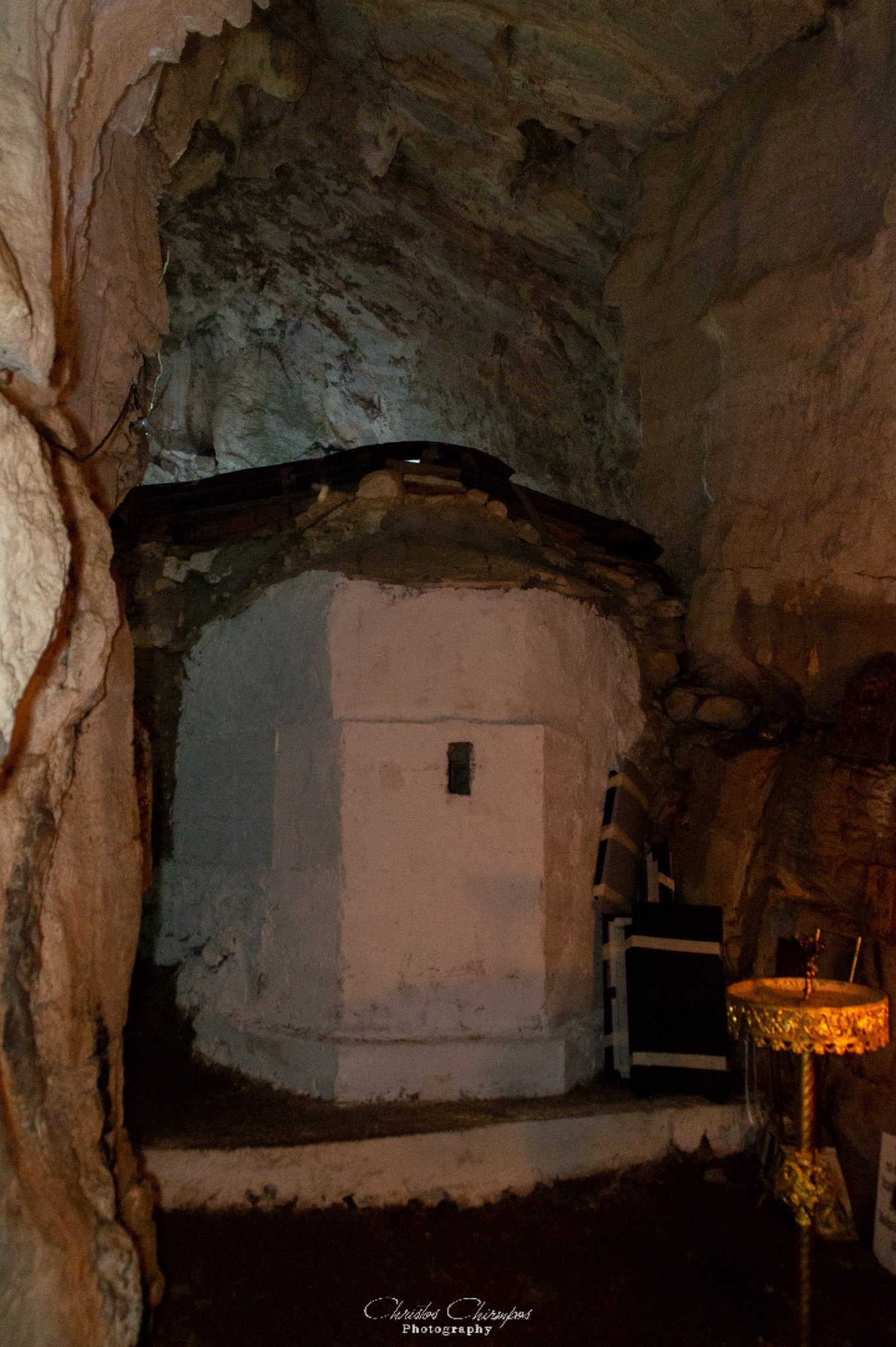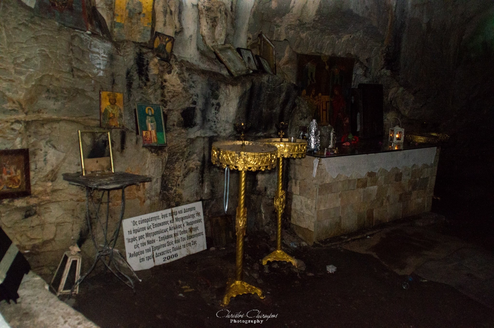 Σε 20 περίπου λεπτά αφού φτάσετε στο σπήλαιο, μπαίνοντας σε αυτό θα αντικρίσετε μία κόγχη κι ένα τέμπλο που συνθέτουν το χώρο του ιερού βήματος. Στην κόγχη ιστορείται η Πλατυτέρα με τέσσερεις ιεράρχες, παραστάσεις που τοποθετούνται χρονικά στον 14ο αιώνα.