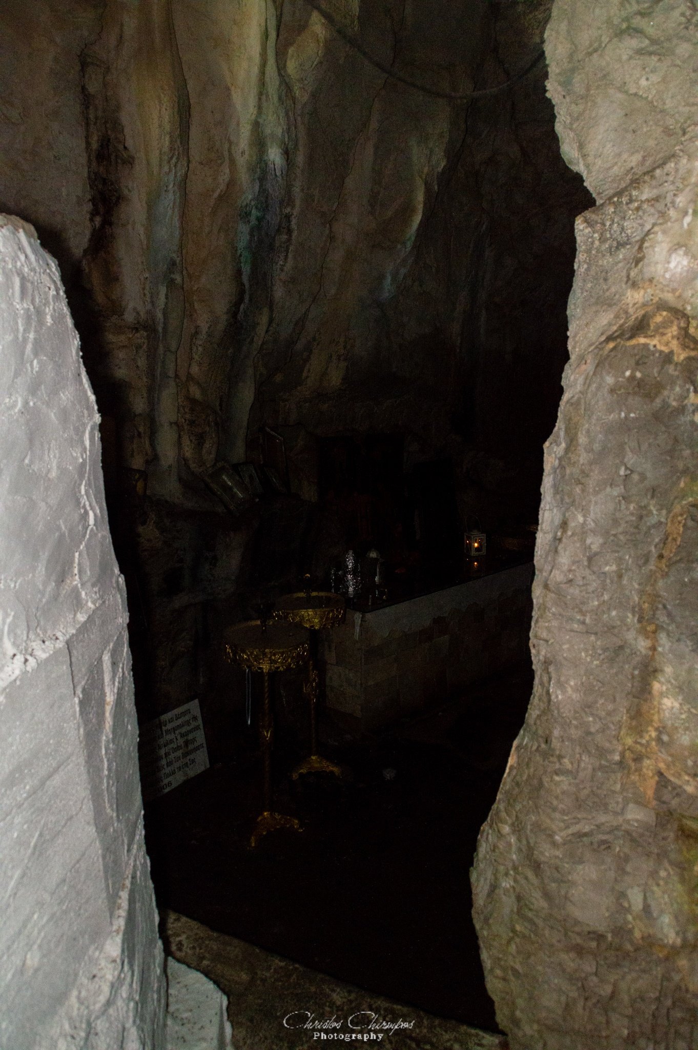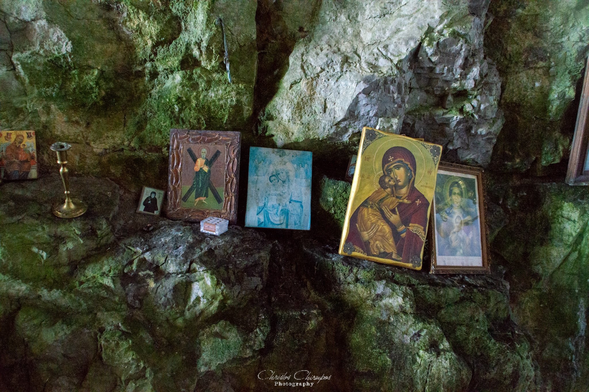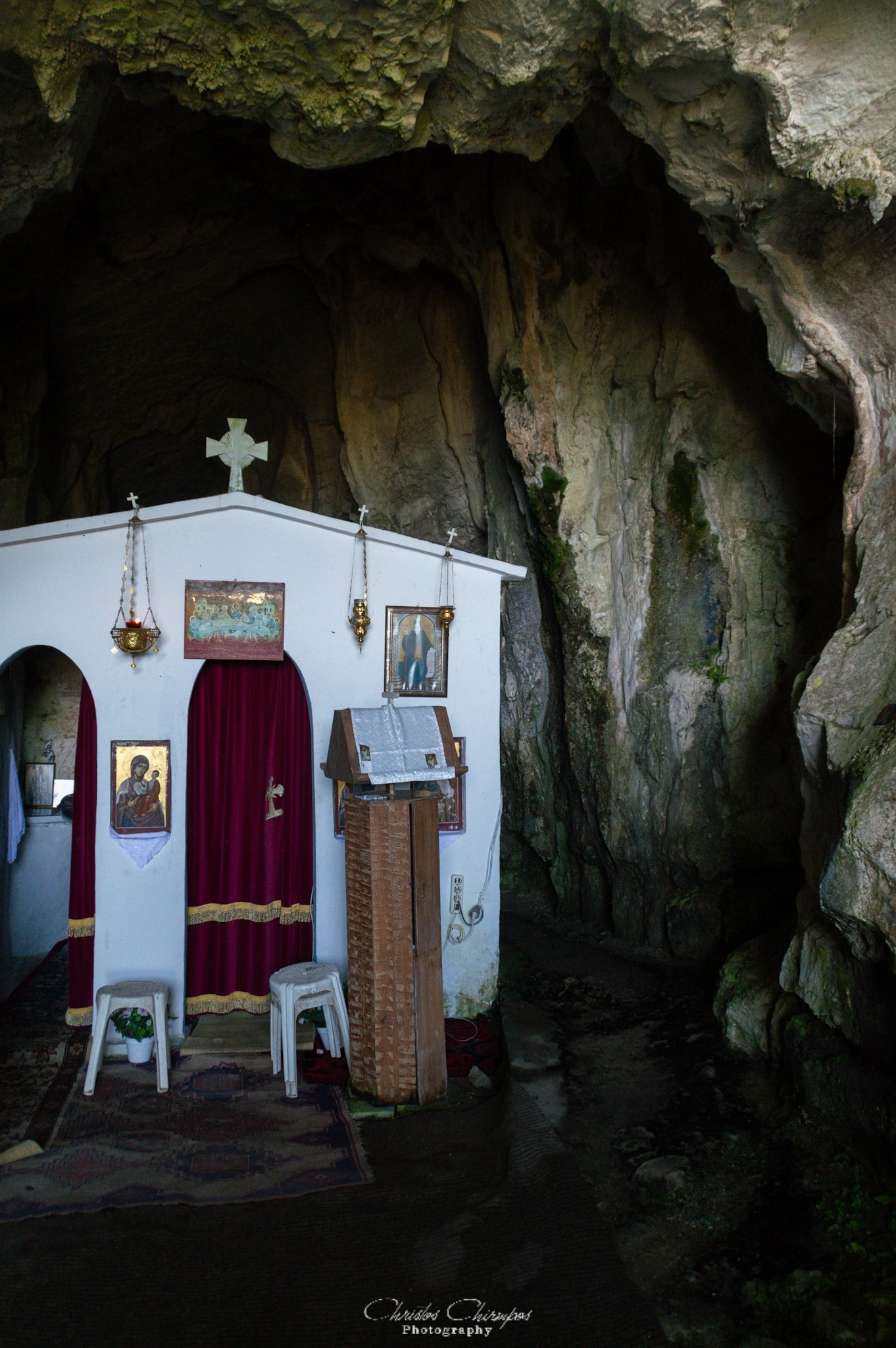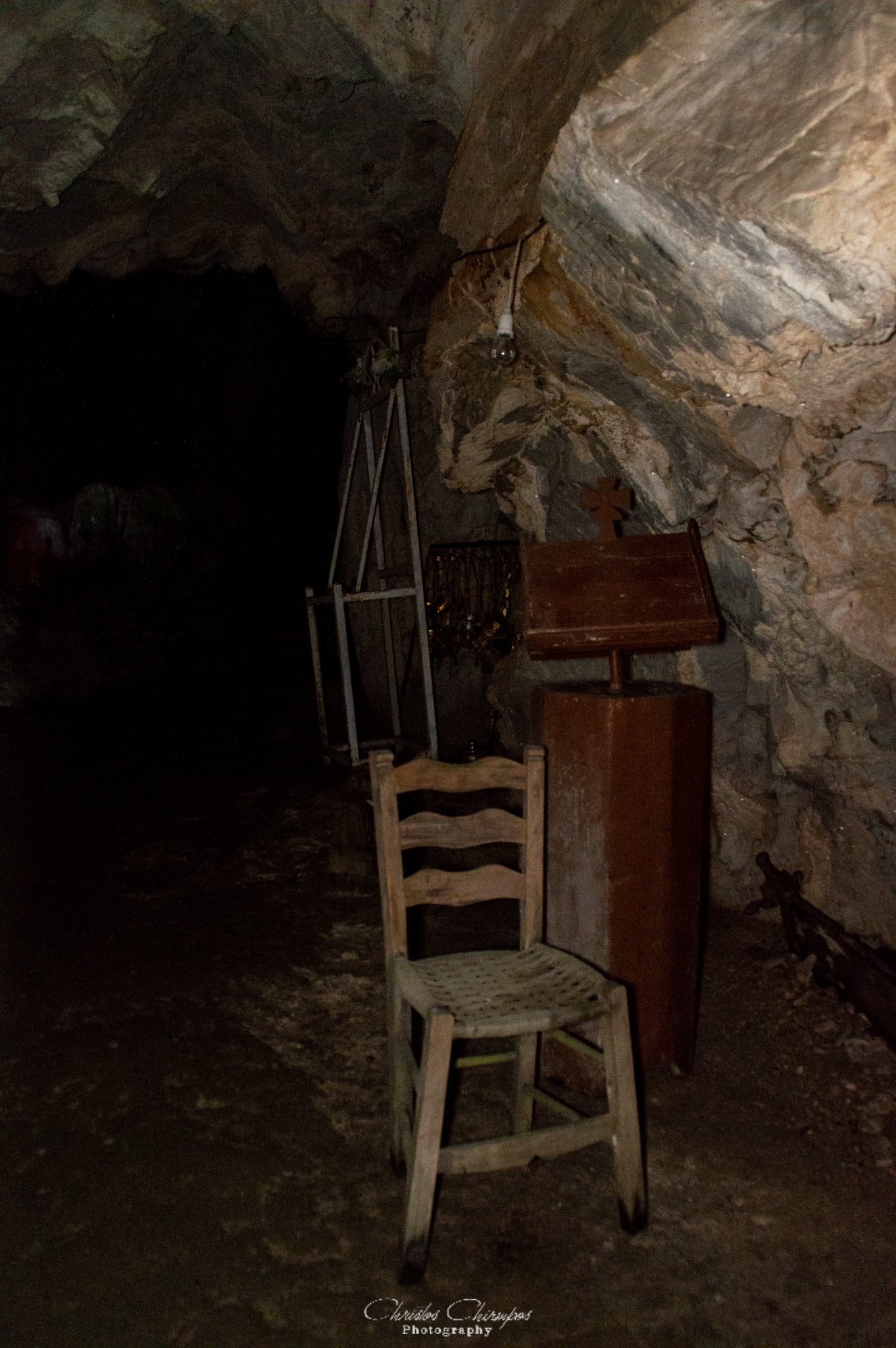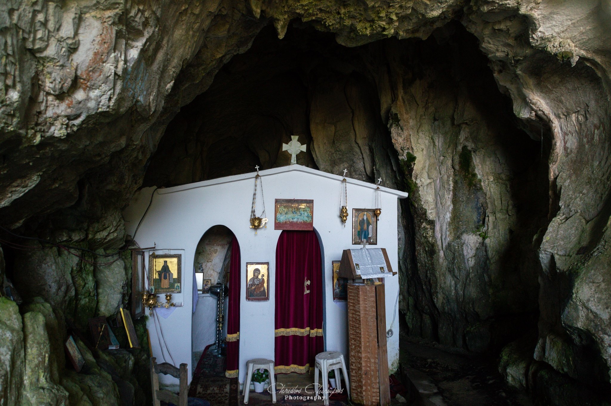 Σε 20 περίπου λεπτά αφού φτάσετε στο σπήλαιο, μπαίνοντας σε αυτό θα αντικρίσετε μία κόγχη κι ένα τέμπλο που συνθέτουν το χώρο του ιερού βήματος. Στην κόγχη ιστορείται η Πλατυτέρα με τέσσερεις ιεράρχες, παραστάσεις που τοποθετούνται χρονικά στον 14ο αιώνα.