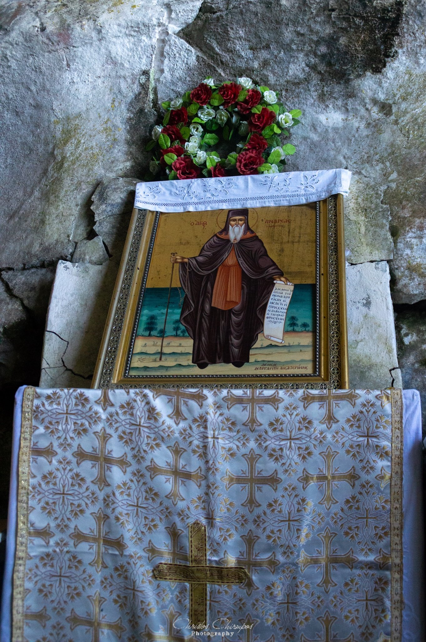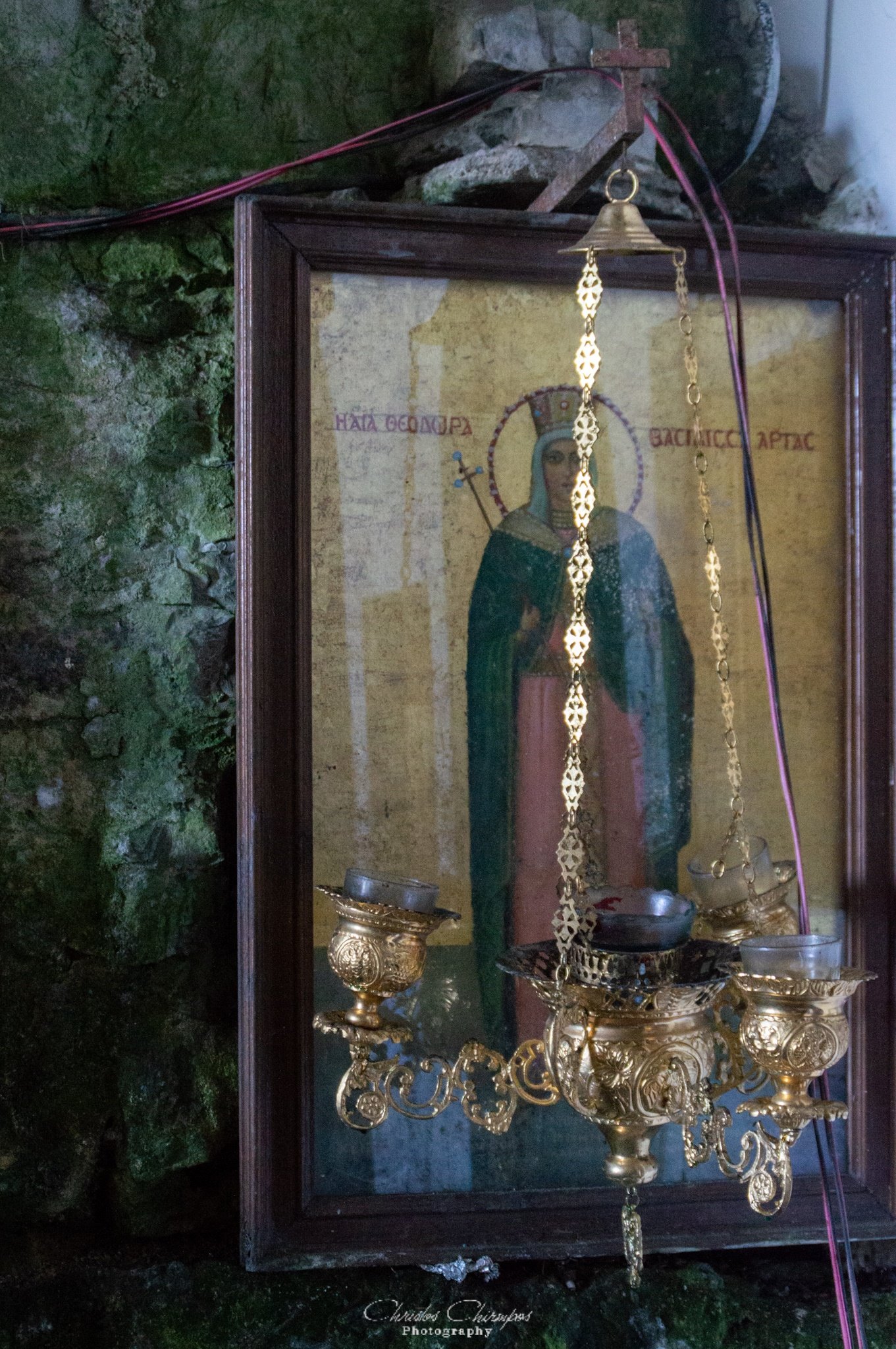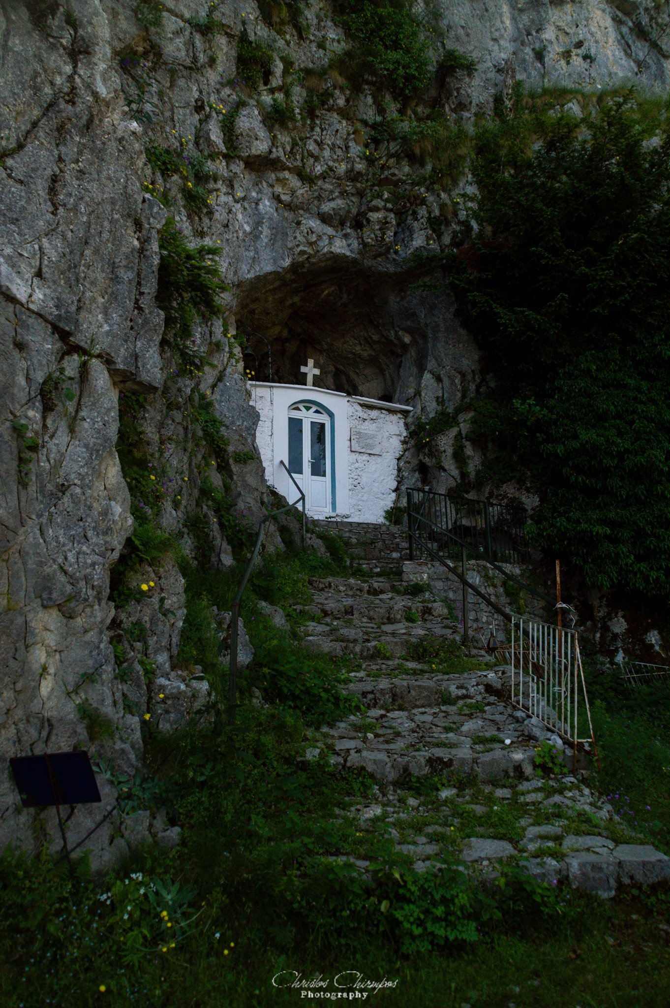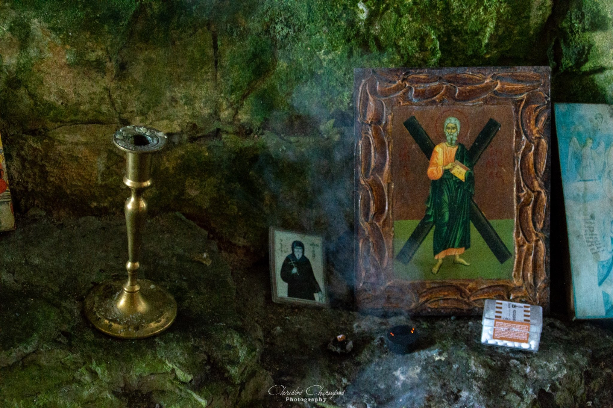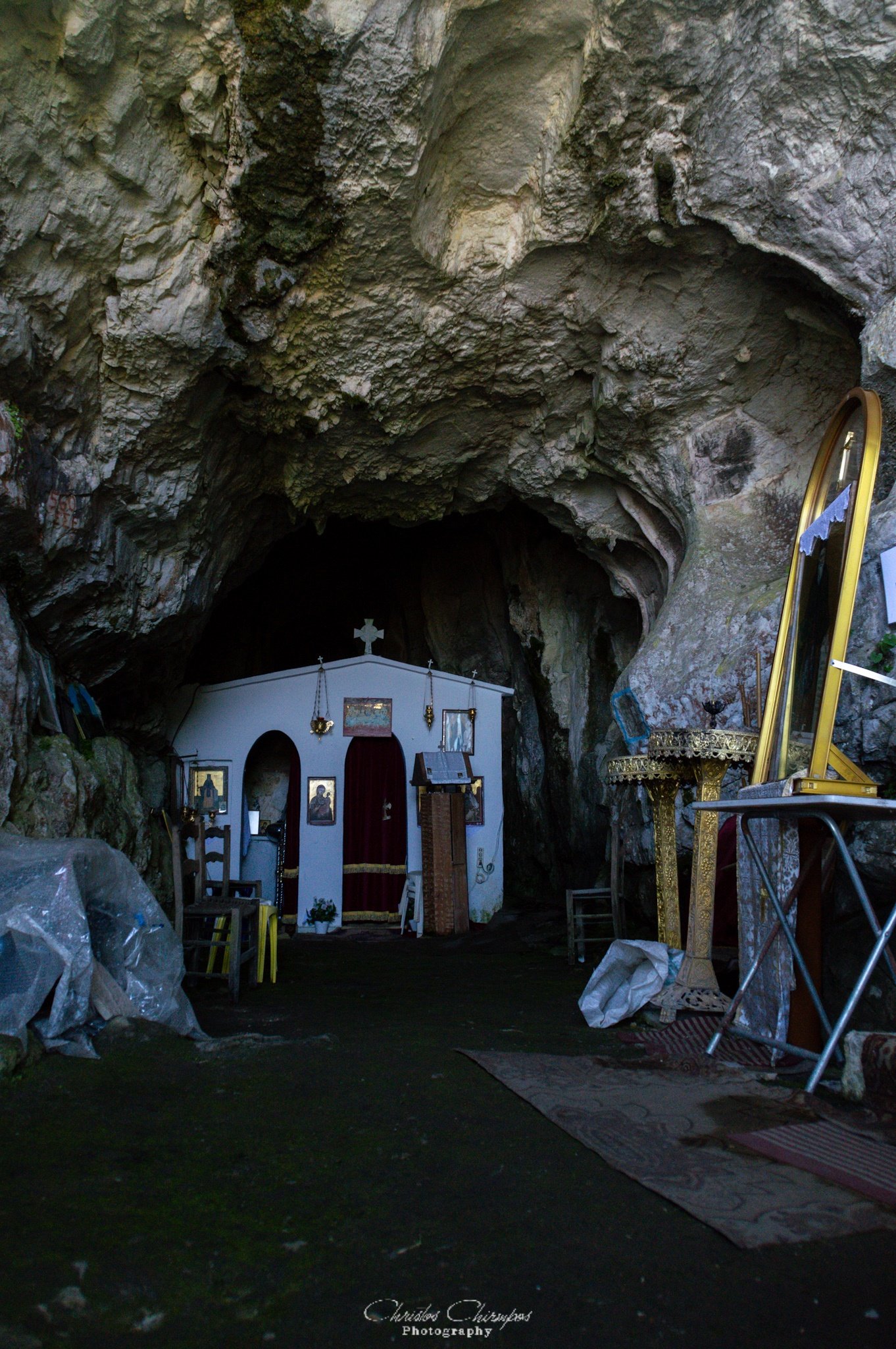 Σε 20 περίπου λεπτά αφού φτάσετε στο σπήλαιο, μπαίνοντας σε αυτό θα αντικρίσετε μία κόγχη κι ένα τέμπλο που συνθέτουν το χώρο του ιερού βήματος. Στην κόγχη ιστορείται η Πλατυτέρα με τέσσερεις ιεράρχες, παραστάσεις που τοποθετούνται χρονικά στον 14ο αιώνα.