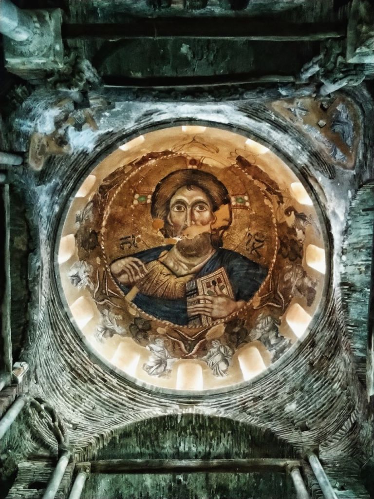 Ο αρχιτέκτων και πρωτομάστορας της εποχής, θέλοντας να κρατήσει τον τρούλο- στον οποίο δεσπόζει το ψηφιδωτό του Παντοκράτορα- ορατό από την είσοδο, αλλά και για να υπάρχει ευρυχωρία και επαρκής φωτισμός, επινόησε και εφάρμοσε ένα πρωτότυπο και ιδιαιτέρως τολμηρό σχέδιο στήριξης του τρούλου. Κατόρθωσε να στηρίξει τον τρούλο με μια εντυπωσιακή μέθοδο, αποφεύγοντας να βάλει κολόνες στο κέντρο του ναού. Στις τέσσερις γωνιές της εκκλησίας τοποθέτησε από ένα ζευγάρι παραστάδες (κολόνες στήριξης). Πάνω σε αυτές έβαλε οριζοντίως κορμούς κιόνων πακτωμένους στους τοίχους. Στο ελεύθερο τμήμα αυτών που εξείχαν προς το εσωτερικό του ναού, τοποθετήθηκε ένας δεύτερος όροφος από κίονες και έτσι με αυτό το σύστημα, δηλαδή κολόνα σε κολόνα, οδηγήθηκε με ένα πυραμοειδές σχήμα και με σχεδόν αιωρούμενους κίονες προς τον τρούλο.