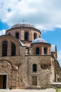 Η Μονή περιλαμβάνει φρουριακό περίβολο (τείχη, πύργους, πύλη) και καθολικό στον τύπο του σταυροειδούς εγγεγραμμένου δικιόνιου ναού με πεντάτρουλη στέγαση. Ο εικονογραφικός διάκοσμος αποτελεί δείγμα της υψηλής τέχνης του 12ου αιώνα της Σχολής της Κωνσταντινούπολης. Στη ΝΑ γωνία του ναού υπάρχει εντοιχισμένο κεραμικό κόσμημα με θέμα τον αετό. Ο νάρθηκας έχει κατεδαφιστεί, άγνωστο πότε. Μεταγενέστερες επιδιορθώσεις έχουν δεχτεί η κεντρική αψίδα και η πρόθεση. Μεταγενέστερες επίσης είναι και οι τέσσερις αντηρίδες εξωτερικά.