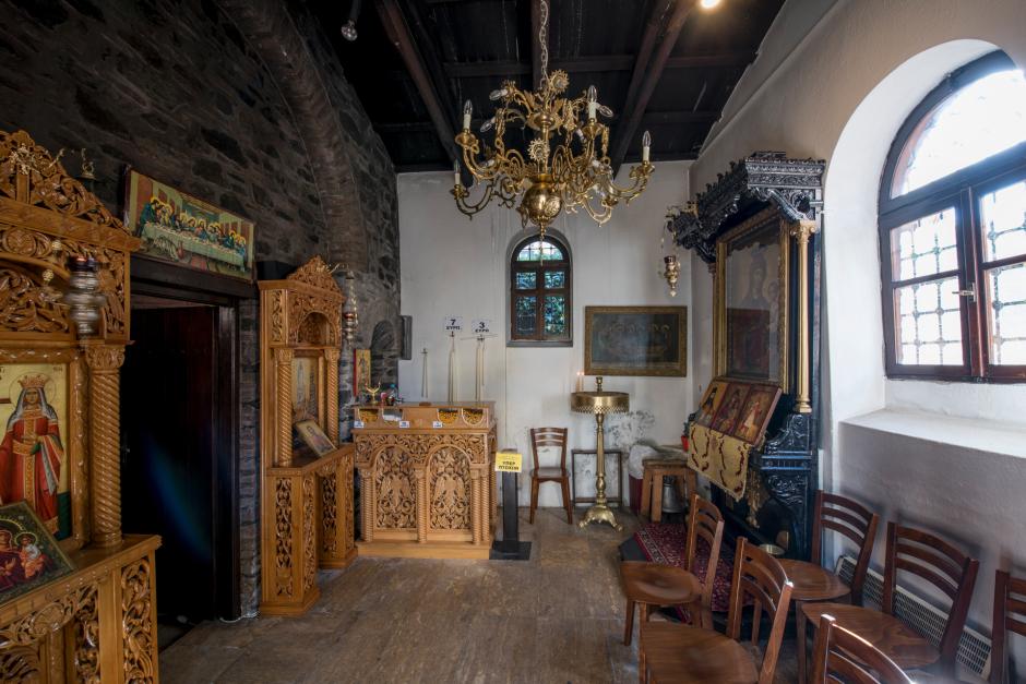 Αξιόλογες είναι οι τοιχογραφίες στο εσωτερικό του τρούλου, όπου στην κορυφή παριστάνεται η Ανάληψη του Χριστού και στη βάση του η Θεία Λειτουργία. Στην παράσταση της Θείας Λειτουργίας ο Χριστός δεν περιβάλλεται από αγγέλους, αλλά από ιεράρχες, διακόνους, ψάλτες και πιστούς. Συνεπώς εδώ δεν έχουμε την απεικόνιση της Ουράνιας Λειτουργίας, αλλά της επίγειας Θείας Λειτουργίας, όπως αυτή εξελίσσεται στην εκκλησία.