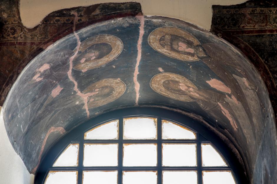 Στο εσωτερικό σώζονται κάποιες τοιχογραφίες του 14ου αιώνα (1360-1370), στις οποίες κυριαρχούν σκηνές από τον Βίο του Χριστού, καθώς και μεμονωμένοι άγιοι.