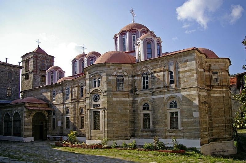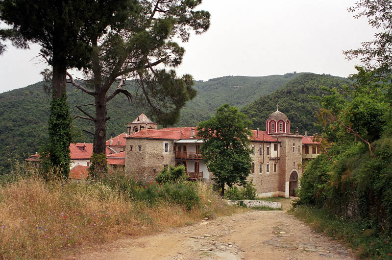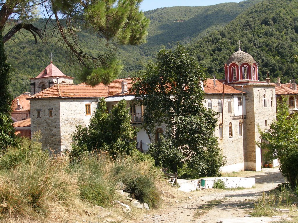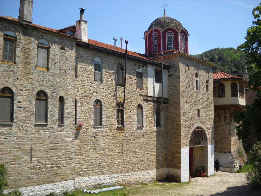 Η μονή βρίσκεται κοντά στη Μονή Ζωγράφου σε απόσταση 50’ από τη παραλία, σε υψόμετρο 200μ. σύμφωνα με τις ιστορίες ίδρυσης της υπάρχουν οι εξής εκδοχές, η πρώτη αφηγείται την ανέργεση ενός ναού από τον αυτοκράτορα Μεγάλο Κωνσταντίνο και τον γιό του Κωνστάντιο τον 4ο αιώνα. Άλλες πηγές συνδέουν την ίδρυση της με κάποιο μοναχό από την Κασταμονή της Μικράς Ασίας , για τον οποίο λέγεται ότι έκτισε τη Μονή στο σημείο που ίσως υπήρχε η αρχαία πόλη Θύσσος. Η πρώτη επιβεβαιωμένη μαρτυρία για την ύπαρξη της Μονής χρονολογείται στα τέλη του 11ου αιώνα και βρίσκεται σε ένα έγγραφο του 1097 το οποίο αναφέρει τον ηγούμενο Ιλαρίων Κασταμονίτη (πιθανόν κτήτορα της Μονής).
