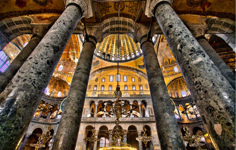 Η Αγία Σοφία, σύμβολο πνευματικό και πολιτικό της Βυζαντινής Αυτοκρατορίας, ένα θαύμα της βυζαντινής αρχιτεκτονικής, επιβίωσε ως τις ημέρες μας παρά τις αντιξοότητες και αποτελεί ένα μνημείο της παγκόσμιας πολιτιστικής κληρονομιάς.