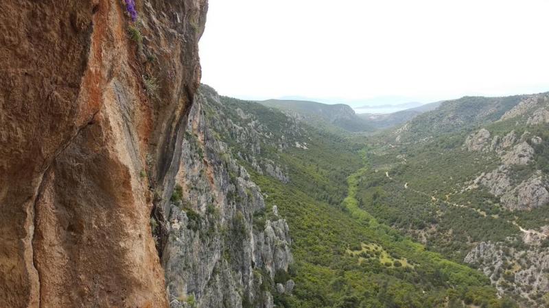 Η πανοραμική θέα αποκαλύπτει όλο το φαράγγι και την θάλασσα των Ιρίων.