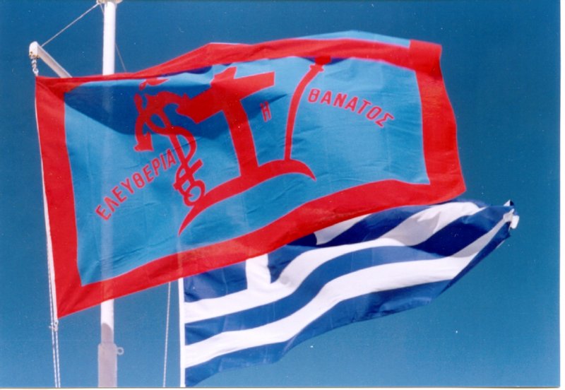 Σημαία Κρήτης: Η Σημαία που υψώθηκε την 21 Αυγούστου 1866, κατά την έναρξη της Κρητικής Επανάστασης αποτελώντας κορυφαία πράξη του απελευθερωτικού αγώνα των Κρητών, σύμβολο ηρωισμού και θυσίας. Η αναγραφόμενη φράση «Ένωσις ή Θάνατος» εξέφραζε, με εμφατικό τρόπο, τον προαιώνιο πόθο του κρητικού λαού της ένωσης της Μεγαλονήσου με την μητέρα Ελλάδα.