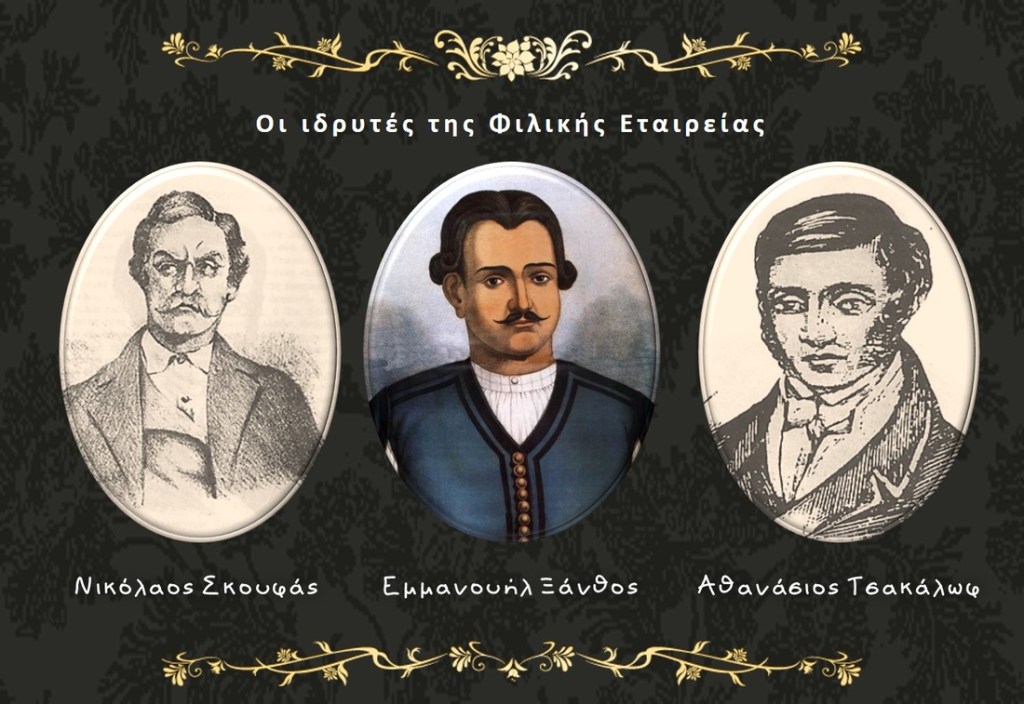 Οι ιδρυτές της Φιλικής Εταιρείας Νικόλαος Σκουφάς, Εμμανουήλ Ξάνθος και Αθανάσιος Τσακάλωφ, προχώρησαν στην εγγραφή μελών στις ελληνικές παροικίες του εξωτερικού και στις Παραδουνάβιες Ηγεμονίες, ενθαρρυμένοι από το επαναστατικό πνεύμα του Ρήγα Βελεστινλή, τους αγώνες του Λάμπρου Κατσώνη και των Σουλιωτών καθώς και την αναταραχή που προκαλούσαν στην Οθωμανική Αυτοκρατορία απείθαρχοι πασάδες.