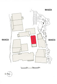 Απόσπασμα του Σχεδίου Πόλεως Άνδρου του 1865 όπου σαφώς φαίνονται αφενός οι διαστάσεις του ναού αφετέρου το δύο προεξέχοντα ιερά του δικλίτου δικόγχου ναού του Αγ. Γεωργίου-Θεοτόκου. Διακρίνεται μάλιστα και προαύλιο. Ο ναός ήταν μεγαλύτερος του σημερινού κυρίως προς Νότον.
