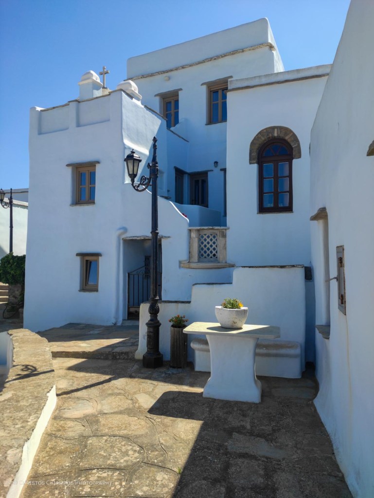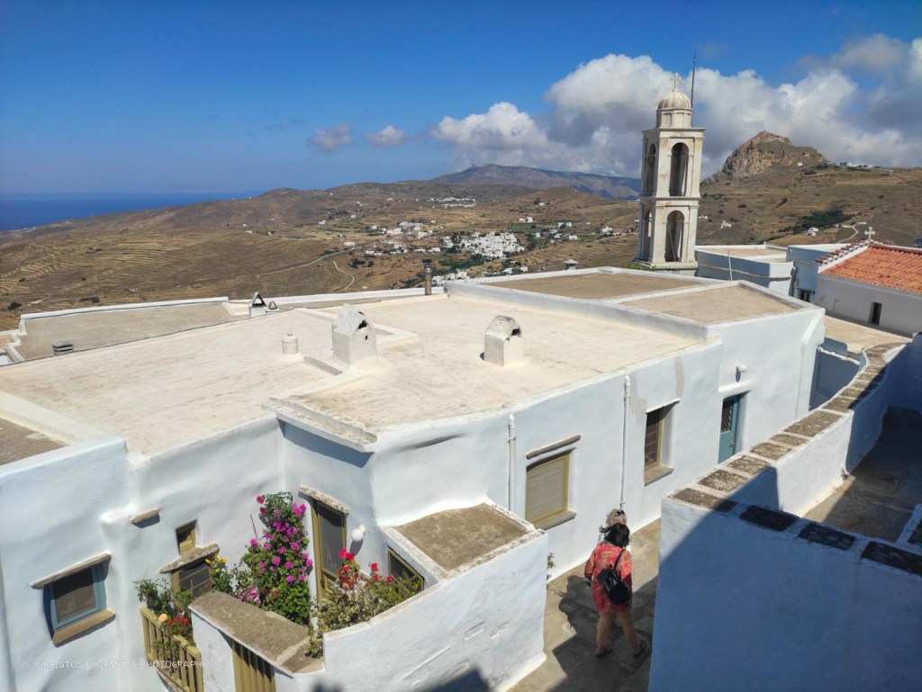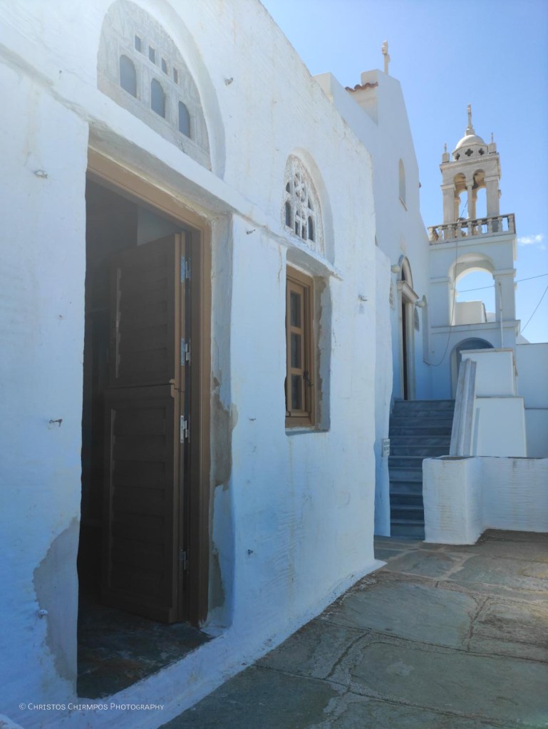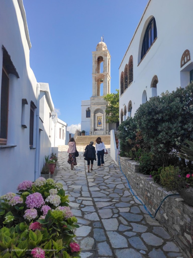 Ιδιαίτερο είναι και το αρχιτεκτονικό ενδιαφέρον της Μονής. Μοιάζει με παραδοσιακό χωριό περιβαλλόμενο από φρουριακό τείχος και διατηρεί τη λιτή κυκλαδίτικη αρχιτεκτονική με κυρίαρχα στοιχεία την πέτρα, τις καμάρες, τα λιθόστρωτα σοκάκια, το λευκό χρώμα.