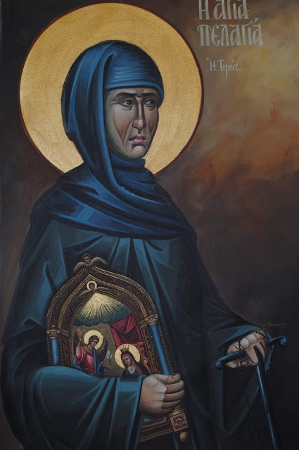 Ἀμέμτπως ἐβίωσας ἐν ἐγκράτειᾳ πολλὴ καὶ πόνοις ἀσκήσεως καὶ ἐν ἀγάπῃ θερμή, Πελαγία Θεόληπτε. Ὅθεν τὴν Θεοτόκον ἐπαλλήλως κατεῖδες, μηνύουσαν σοὶ Εἰκόνος τὴν ἀνεύρεσιν ταύτης. Ἣν πρέσβευε, Ἁγία Μῆτερ, ὑπὲρ τῶν τιμώντων σέ.