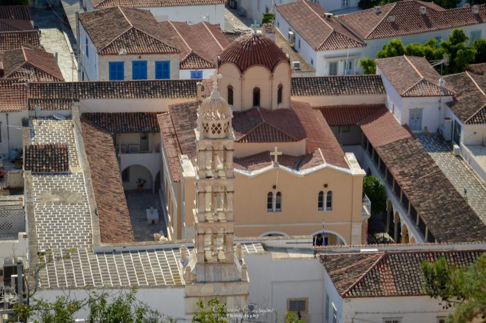 Στη μέση περίπου του λιμανιού βρίσκεται η Μονή της Κοιμήσεως της Θεοτόκου, το «Μοναστήρι» όπως αποκαλείται η Μητρόπολη της Ύδρας, που χτίστηκε στα μέσα του 17ου αιώνα και θεωρείται ένα από τα αρχαιότερα μοναστήρια της Υδρας.