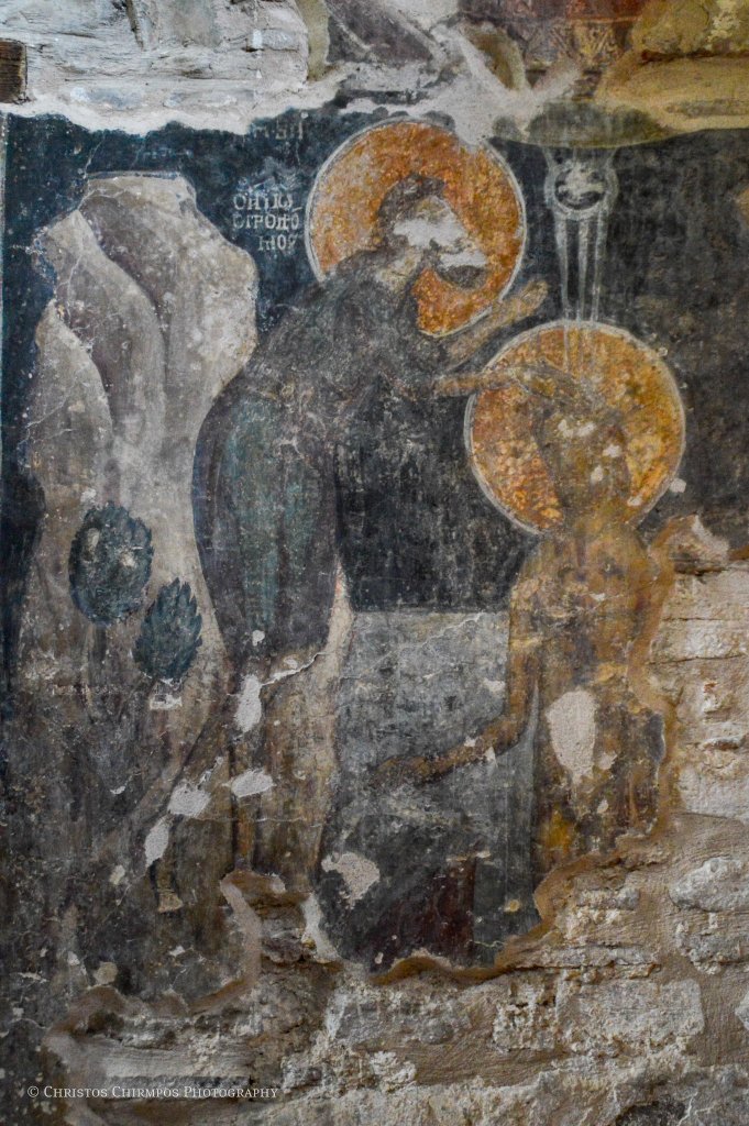 Αντίστοιχα δεξιά της Θεοτόκου, διακρίνεται ο αδερφός του, Ιωάννης Τσιμισκής, συνοδευόμενος επίσης από τη σύζυγό του Άννα. Οι μορφές είναι ενδεδυμένες με πολυτελή ενδύματα ενώ η ιδιαιτερότητά τους έγκειται στο γεγονός ότι αποδίδονται με φυσικότητα κι όχι με τη συνήθη αυστηρότητα των μορφών της Βυζαντινής περιόδου. Επίσης, ιδιαίτερο ενδιαφέρον παρουσιάζουν δυο κίονες μπροστά ακριβώς από το τέμπλο του Ναού, που προέρχονται πιθανώς από οικοδόμημα της κλασικής αρχαιότητας, που προϋπήρχε στο χώρο.