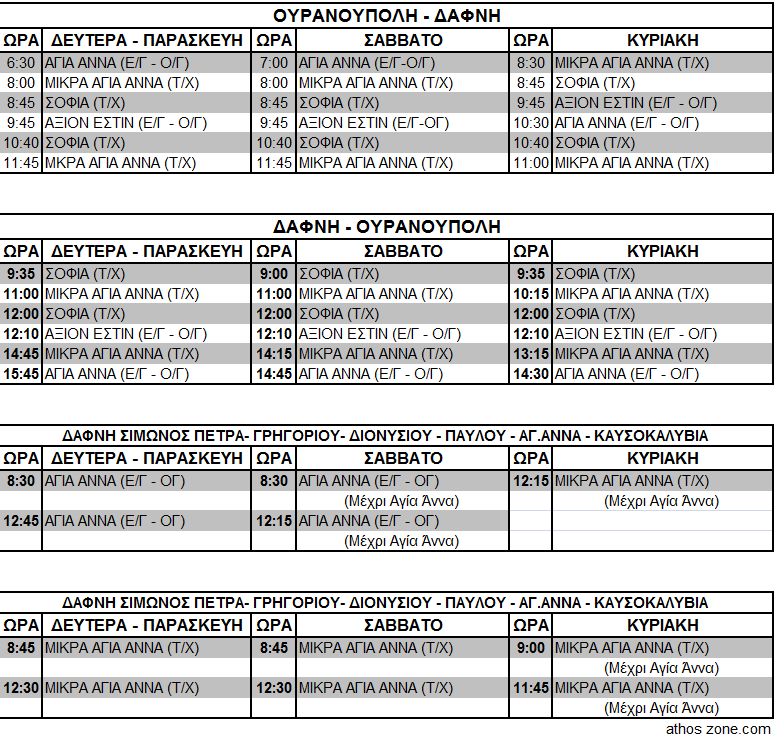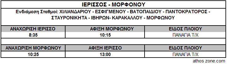Δρομολόγια Πλοίων από Ουρανούπολη και Ιερισσό.